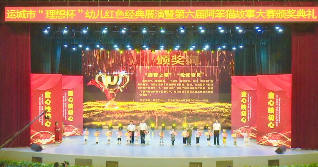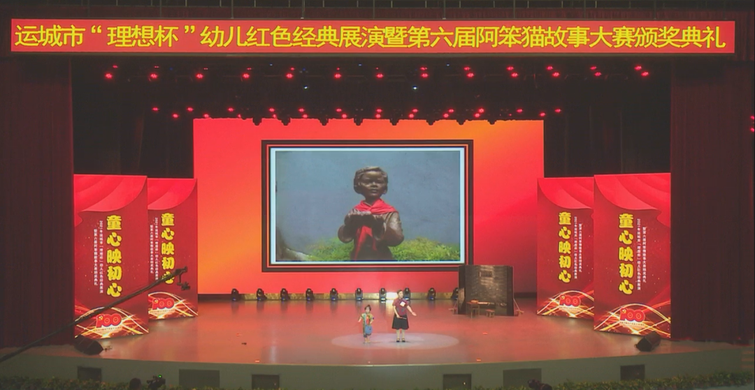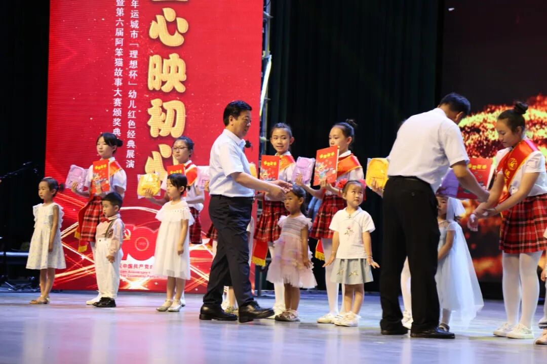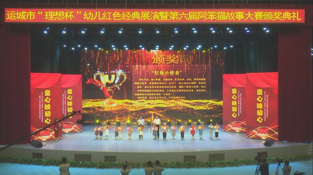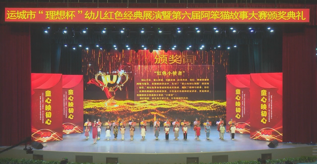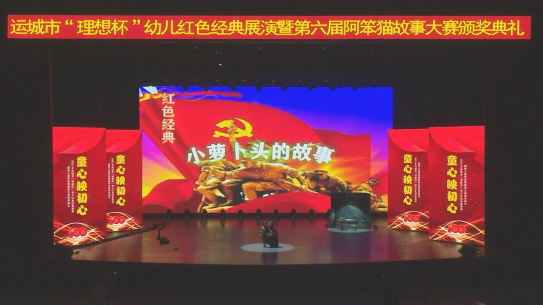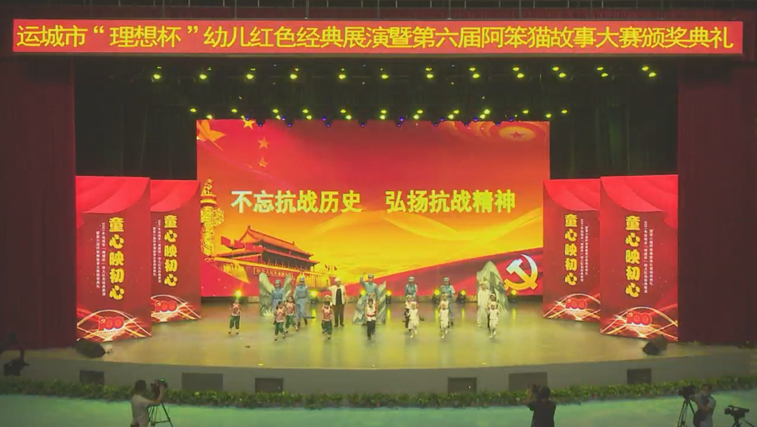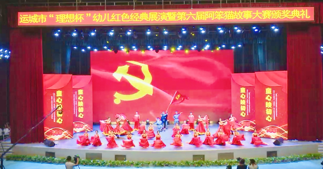 庆祝中国共产党建党100周年 1921-2021 学百年党史 育时代幼苗 《鼓鸣盛世》 颁奖典礼在《鼓鸣盛世》气势宏伟的锣鼓声中拉开帷幕。演员们踏着激越欢快的鼓点,用青春和激情点燃了整台汇演热烈的气氛。 第一篇章 浪淘沙——刻录红色记忆 歌舞剧《红色记忆》 上演情景歌舞剧《红色记忆》,舞动红色神韵,再现长征精神,唱响时代旋律。情景剧《半条被子》深情再现了当年长征路上,红军队伍与人民群众的鱼水情深。 主题故事《吃水不忘挖井人》 “吃水不忘挖井人,时刻想念毛主席。”每当听到这句耳熟能详的话语,人们会自然而然地想起瑞金的那口红井。那甘甜清澈的井水哟,至今源远流长,沁人心脾。 主题故事《红孩子》 孩童生动讲述了红军长征队伍中11岁的小红军张爱红的英勇事迹。生动感人的讲述了在战火纷飞的岁月里,无数的革命先辈为了全民族的解放和新中国的建立,不畏艰难险阻,前仆后继,英勇现身。 颁奖:“启智之星”“悦读宝贝” 奶声奶气童趣盎然,一个故事悦动童年,他们用儿童独有的智慧,将我们带到了纯真的故事乐园。我们坚信,等他们长大,仍会有更多的故事等他们一一讲述。 第二篇章 风入松——传承红色基因 绘本剧《一封鸡毛信》 在众多革命烈士拼搏奋斗的同时,还有很多小英雄,小海娃就是其中之一。抗日战争期间,儿童团员海娃利用老绵羊的尾巴保住了鸡毛信,鬼子被海娃引进山里,八路军全歼了敌人。孩童用赤诚、真挚的情感,讲述着一个耳熟能详的故事,令现场所有人为之动容。 主题故事《抗日英雄王二小》 一首《歌唱二小放牛郎》传唱了许多年,优美的旋律和动人的故事影响了一代代人。中国少年抗日英雄王二小的英雄事迹感动着现场所有人,我们要怀着无比崇敬的真挚感情,深切缅怀革命先烈的丰功伟绩。 主题故事《小萝卜头》 1949年9月6日,小萝卜头宋振中被国民党反动派残忍杀害,遇害时年仅9岁。他是我国,也是世界上最小的烈士。 颁奖:红色小使者 初心不忘,童心赤诚,他们携着孩童的纯粹与坚定,在稚嫩的讲述中,生动了“童心向初心致敬”的深刻,他们不仅是红色精神的宣讲者,更是将这些精神养分传递和分享的“小使者”!我们坚信,幼儿当立凌云志,红色精神代代传。 第三篇章 望海潮——迈向红色未来 合唱《映山红》《童心向党》 红色歌曲代代传,歌声献给党。老师们用嘹亮的歌声,唱响对伟大祖国浓浓的爱;孩童们用稚嫩的童声,唱出对中国共产党的敬佩和爱戴。 主题故事《请不要用我的杯子》 演员们用悦耳的童声、惟妙惟肖的动作、丰富的表情,演绎出一个精彩的故事《请不要用我的杯子》。 主题故事《愿望》 《愿望》情节动生动、充满童趣,深深吸引着大家,让在场的每个人都沉浸在富有激情的故事情境之中,畅游在欢乐的故事海洋里。 颁奖:“故事大王” 听读说写,学以致用 ,书山有路 ,温故知新。他们,在自在享受的展演中,在全新投入的舞台中,涌出了表达带来的快乐,他们,表现除了讲好中国故事,发出运城声音的自信和从容! 我们坚信,阅读起来,用“语言”在五大领域绽放孩童的活力和风采。 理想学校集体合唱 理想学校学生合唱《共产主义少年先锋队队歌》《社会主义好》,学生们用激情饱满的合唱,时而激情澎湃,时而委婉抒情,将红色经典唱出了和谐,唱出了正气,唱出了朝气,抒发了青少年对祖国的热爱和对党的赞美之情。 一首首红色经典诗歌,一个个革命故事,传承着一种精神,表达了理想学校同学们对红色历史的缅怀,对革命英雄的崇敬,对美好未来的憧憬。这次活动不仅仅让同学们受到了红色思想的熏陶,更为其打开了世界之窗,亲近书本,与中华经典为友,与博览同行!