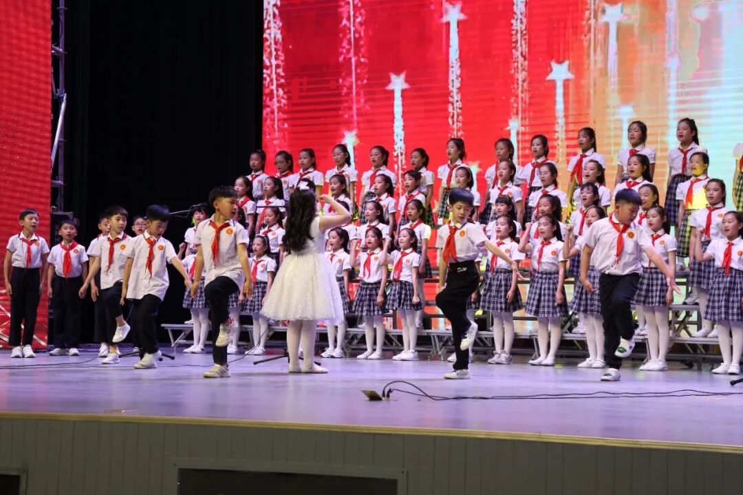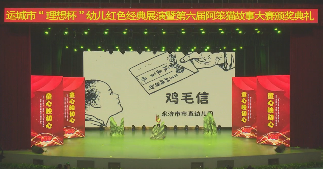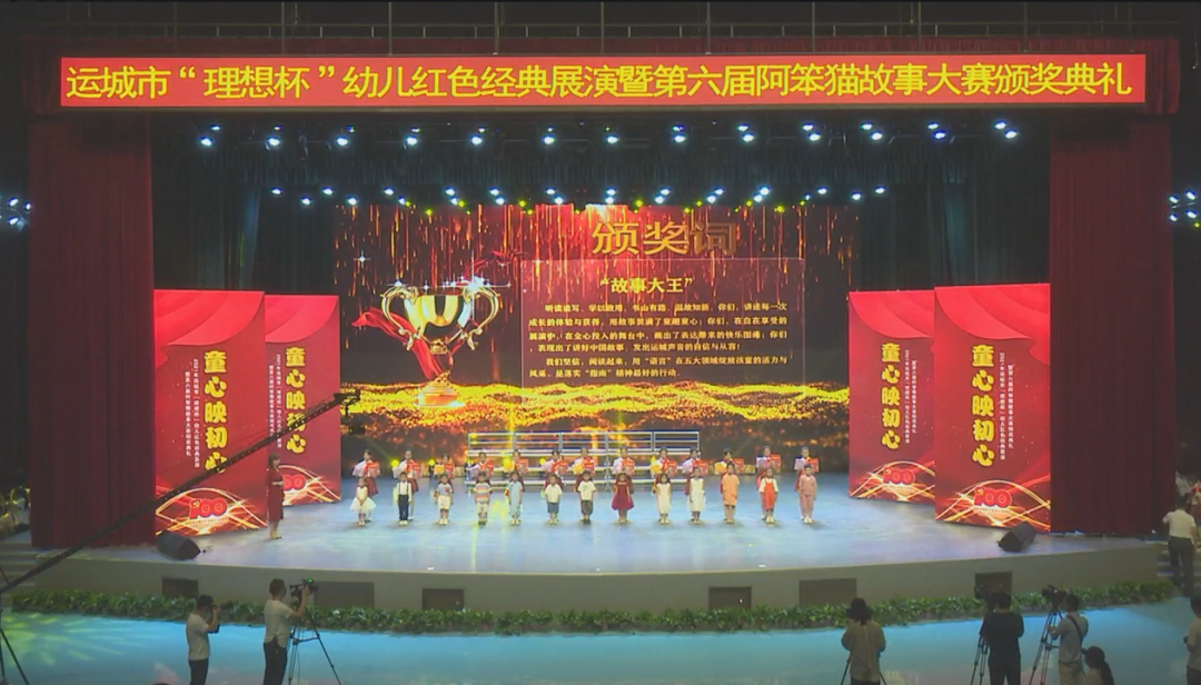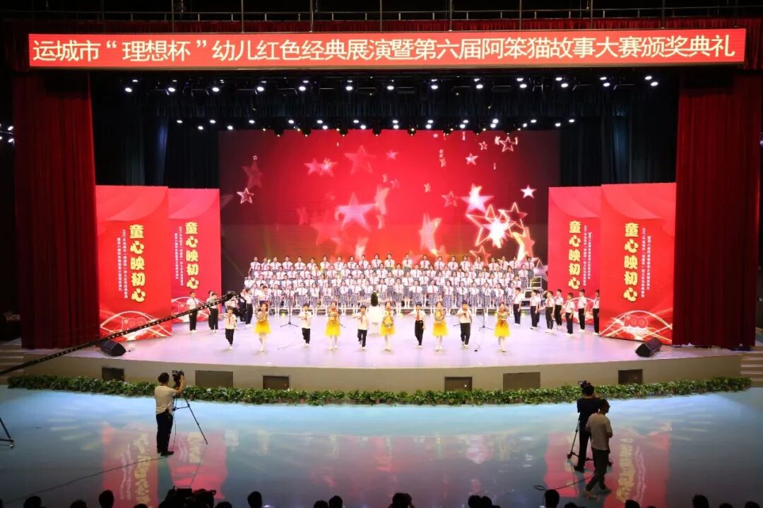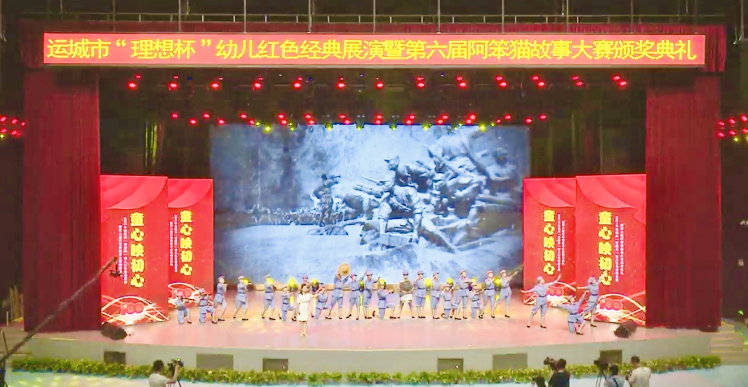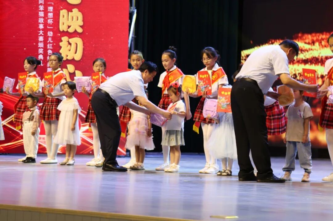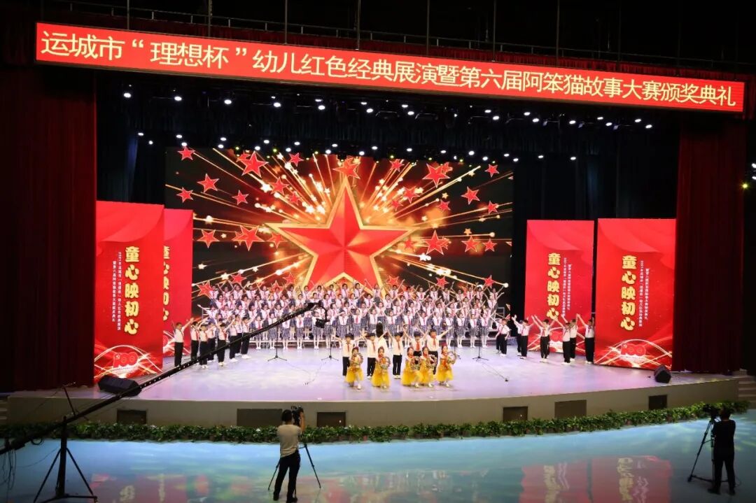 庆祝中国共产党建党100周年 1921-2021 学百年党史 育时代幼苗 《鼓鸣盛世》 颁奖典礼在《鼓鸣盛世》气势宏伟的锣鼓声中拉开帷幕。演员们踏着激越欢快的鼓点,用青春和激情点燃了整台汇演热烈的气氛。 第一篇章 浪淘沙——刻录红色记忆 歌舞剧《红色记忆》 上演情景歌舞剧《红色记忆》,舞动红色神韵,再现长征精神,唱响时代旋律。情景剧《半条被子》深情再现了当年长征路上,红军队伍与人民群众的鱼水情深。 主题故事《吃水不忘挖井人》 “吃水不忘挖井人,时刻想念毛主席。”每当听到这句耳熟能详的话语,人们会自然而然地想起瑞金的那口红井。那甘甜清澈的井水哟,至今源远流长,沁人心脾。 主题故事《红孩子》 孩童生动讲述了红军长征队伍中11岁的小红军张爱红的英勇事迹。生动感人的讲述了在战火纷飞的岁月里,无数的革命先辈为了全民族的解放和新中国的建立,不畏艰难险阻,前仆后继,英勇现身。 颁奖:“启智之星”“悦读宝贝” 奶声奶气童趣盎然,一个故事悦动童年,他们用儿童独有的智慧,将我们带到了纯真的故事乐园。我们坚信,等他们长大,仍会有更多的故事等他们一一讲述。 第二篇章 风入松——传承红色基因 绘本剧《一封鸡毛信》 在众多革命烈士拼搏奋斗的同时,还有很多小英雄,小海娃就是其中之一。抗日战争期间,儿童团员海娃利用老绵羊的尾巴保住了鸡毛信,鬼子被海娃引进山里,八路军全歼了敌人。孩童用赤诚、真挚的情感,讲述着一个耳熟能详的故事,令现场所有人为之动容。 主题故事《抗日英雄王二小》 一首《歌唱二小放牛郎》传唱了许多年,优美的旋律和动人的故事影响了一代代人。中国少年抗日英雄王二小的英雄事迹感动着现场所有人,我们要怀着无比崇敬的真挚感情,深切缅怀革命先烈的丰功伟绩。 主题故事《小萝卜头》 1949年9月6日,小萝卜头宋振中被国民党反动派残忍杀害,遇害时年仅9岁。他是我国,也是世界上最小的烈士。 颁奖:红色小使者 初心不忘,童心赤诚,他们携着孩童的纯粹与坚定,在稚嫩的讲述中,生动了“童心向初心致敬”的深刻,他们不仅是红色精神的宣讲者,更是将这些精神养分传递和分享的“小使者”!我们坚信,幼儿当立凌云志,红色精神代代传。 第三篇章 望海潮——迈向红色未来 合唱《映山红》《童心向党》 红色歌曲代代传,歌声献给党。老师们用嘹亮的歌声,唱响对伟大祖国浓浓的爱;孩童们用稚嫩的童声,唱出对中国共产党的敬佩和爱戴。 主题故事《请不要用我的杯子》 演员们用悦耳的童声、惟妙惟肖的动作、丰富的表情,演绎出一个精彩的故事《请不要用我的杯子》。 主题故事《愿望》 《愿望》情节动生动、充满童趣,深深吸引着大家,让在场的每个人都沉浸在富有激情的故事情境之中,畅游在欢乐的故事海洋里。 颁奖:“故事大王” 听读说写,学以致用 ,书山有路 ,温故知新。他们,在自在享受的展演中,在全新投入的舞台中,涌出了表达带来的快乐,他们,表现除了讲好中国故事,发出运城声音的自信和从容! 我们坚信,阅读起来,用“语言”在五大领域绽放孩童的活力和风采。 理想学校集体合唱 理想学校学生合唱《共产主义少年先锋队队歌》《社会主义好》,学生们用激情饱满的合唱,时而激情澎湃,时而委婉抒情,将红色经典唱出了和谐,唱出了正气,唱出了朝气,抒发了青少年对祖国的热爱和对党的赞美之情。 一首首红色经典诗歌,一个个革命故事,传承着一种精神,表达了理想学校同学们对红色历史的缅怀,对革命英雄的崇敬,对美好未来的憧憬。这次活动不仅仅让同学们受到了红色思想的熏陶,更为其打开了世界之窗,亲近书本,与中华经典为友,与博览同行!