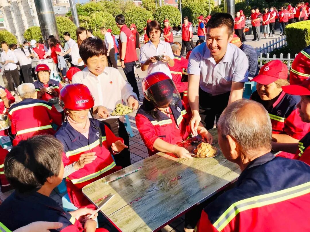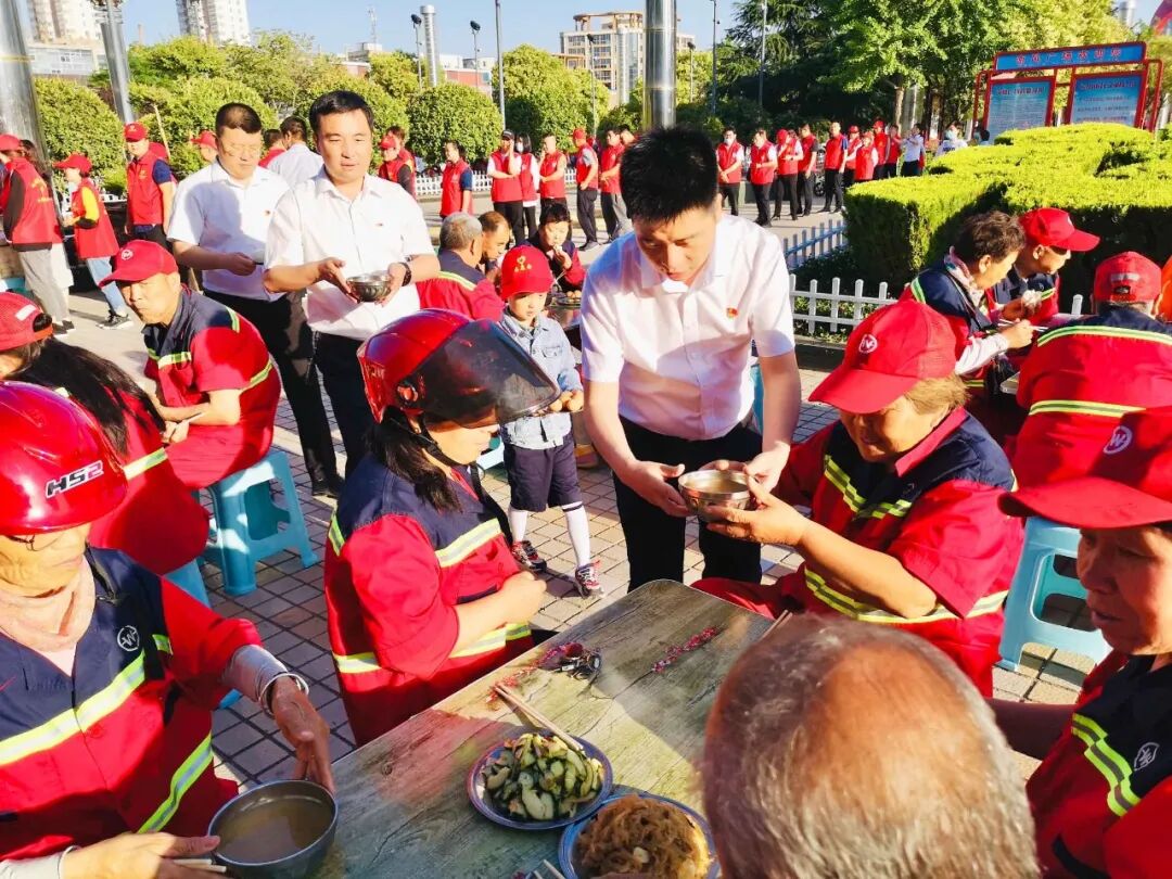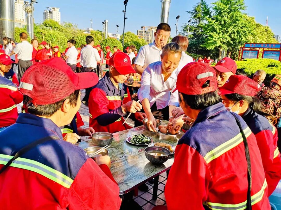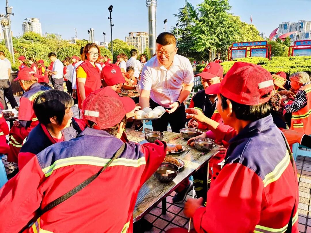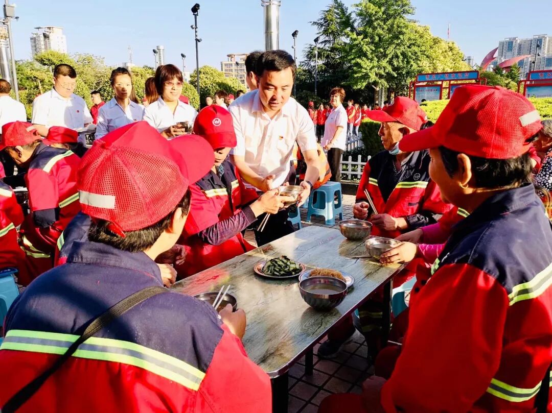鑫马集团为环卫工人 免费送早餐 用心一餐 温暖一城 仲夏,酷暑难当 他们在炎炎的烈日下挥汗如雨 严冬,天寒地冻 他们在呼啸的北风中兢兢业业 每时每刻的坚守 换来的是城市的干净整洁 他们就是城市的美容师,是城市的守护者 是坚守平凡岗位的环卫工人 他们就是运城的 环卫工人们 早餐送温暖 情暖环卫工 6月4日一早,鑫马集团党支部联合盐湖区第一时间志愿者协会在南风广场为坚守岗位的环卫工人们送上一份温暖的爱心早餐。理想创业大厦党支部书记马国伟等党员参加。 早上天刚蒙蒙亮,鑫马集团的志愿者们就已经来到南风广场,附近作业的环卫工人们陆续来到了爱心早餐发放点并排好队伍,鑫马集团志愿者们有序地将早餐递送到环卫工人手中:“阿姨,你小心端着,别烫着了。”“叔叔、阿姨,你们辛苦了!” 一份简单的早餐暖了环卫工人的胃,也暖了他们的心。接过志愿者们递来的早餐,环卫工人脸上露出了会心的微笑。一身朴素的工作服,一辆陈旧的垃圾车,再加上一把普通到不能再普通的扫帚,一个布满岁月印痕的簸箕,就是这群默默奉献的环卫工人工作时的所有的“家当”。在关怀他们的同时,志愿者们也从他们身上感受到了质朴和勤劳的高贵品质。 鑫马集团的志愿者高兴的说:“这是个充实并有意义的早晨,虽然5点就得起床,但当看到环卫工人们吃到爱心早餐脸上露出开心的笑容时,我感觉一切都是值得的。”是的,爱心早餐无不流露出爱心之举,更彰显出一座城市的温情。 鑫马集团作为一家有社会责任感的企业,践行公益从未止步。此次活动,我们不仅要唤起社会对环卫工的尊重,增加环保意识,让我们的城市更美丽,我们也希望能有更多的人参与公益,关爱城市守护者,为建设更加美好、温暖的运城贡献一份力量。