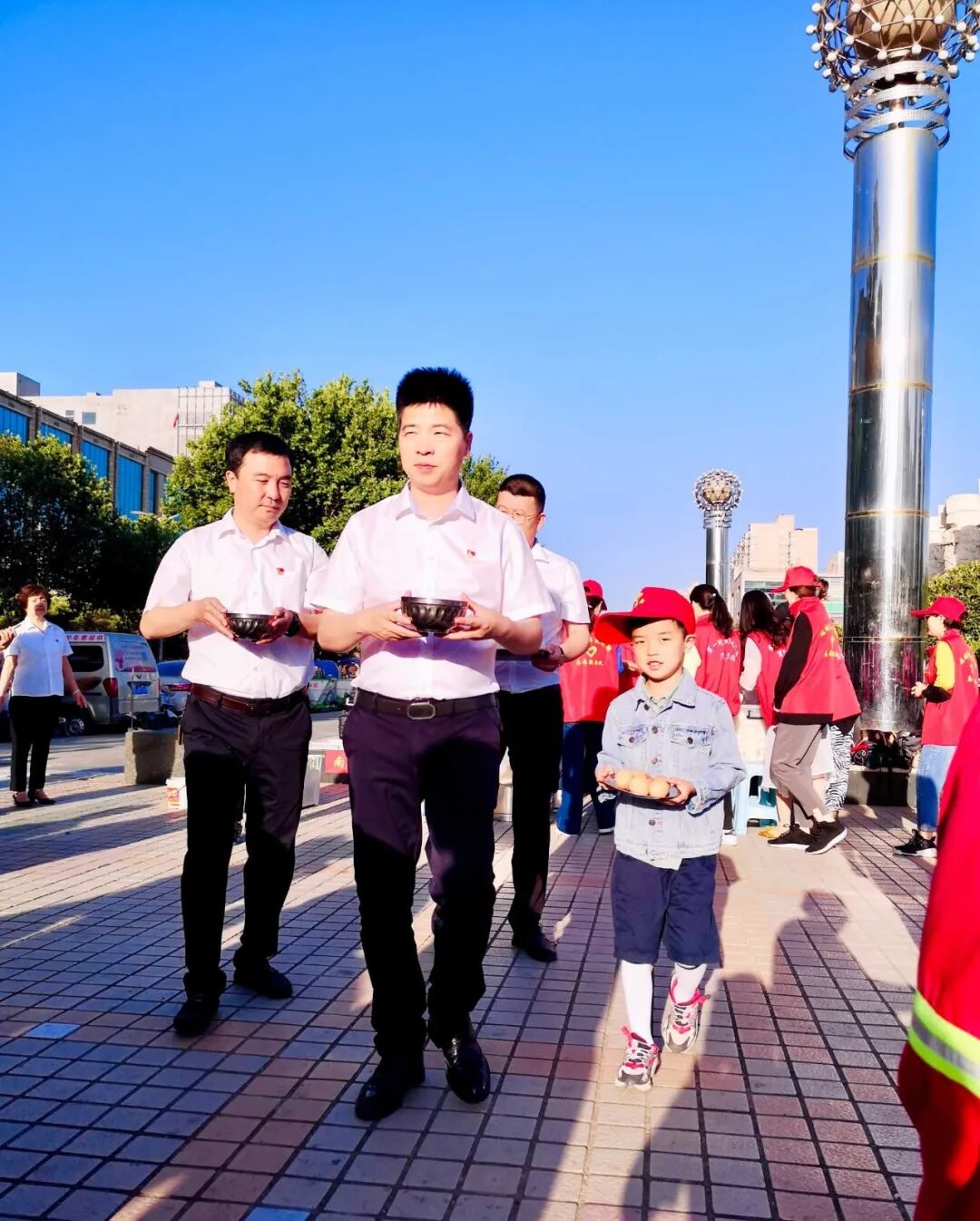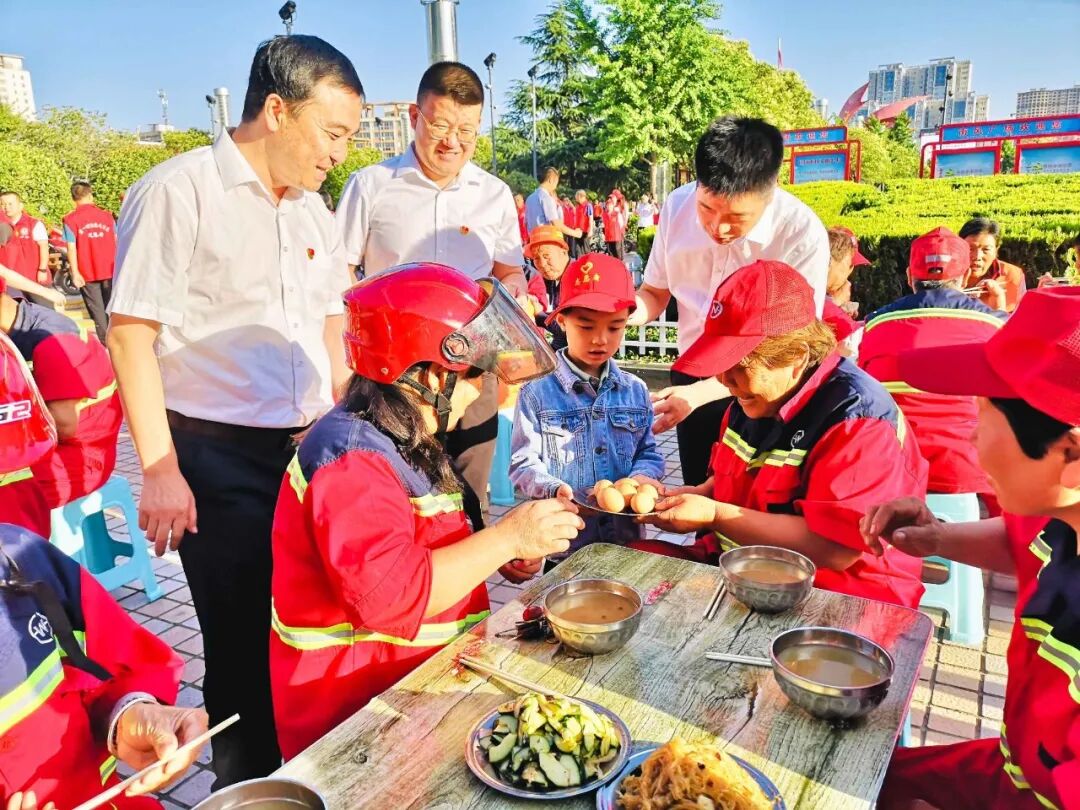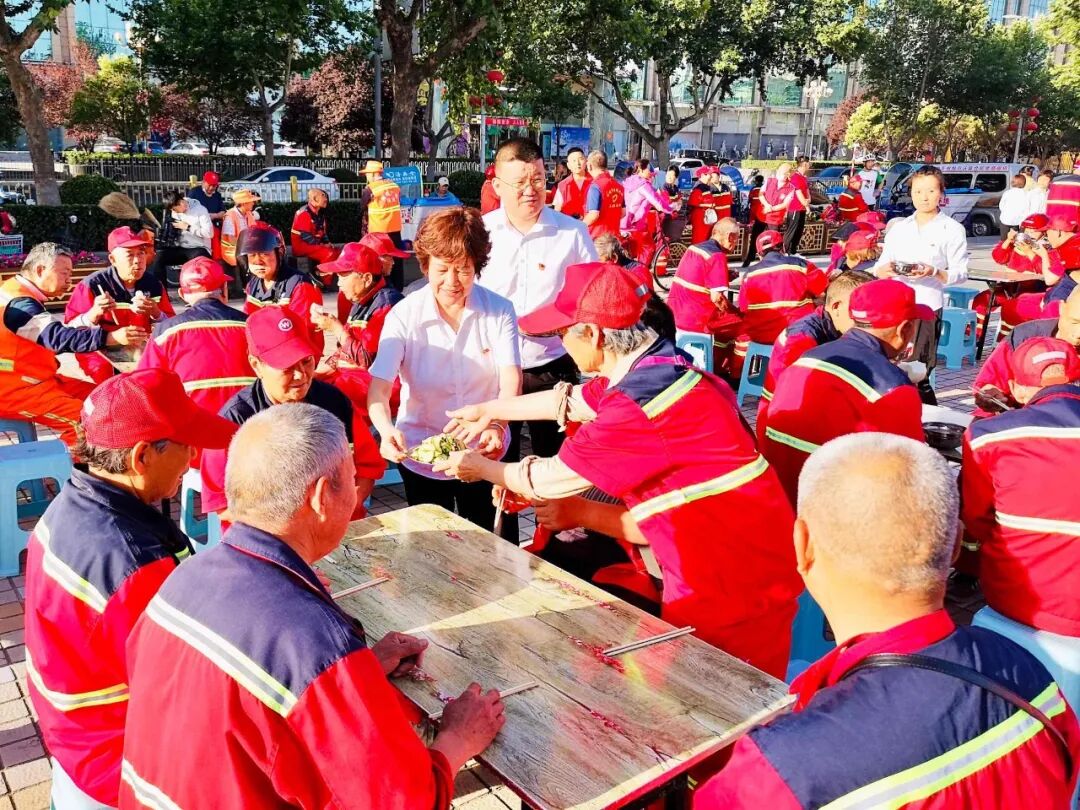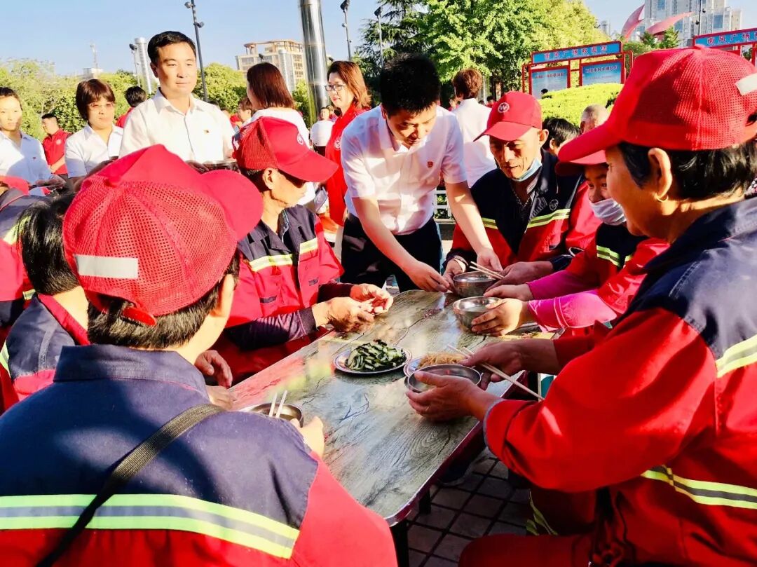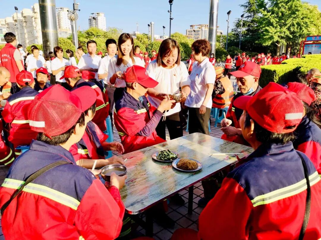 鑫马集团为环卫工人 免费送早餐 用心一餐 温暖一城 仲夏,酷暑难当 他们在炎炎的烈日下挥汗如雨 严冬,天寒地冻 他们在呼啸的北风中兢兢业业 每时每刻的坚守 换来的是城市的干净整洁 他们就是城市的美容师,是城市的守护者 是坚守平凡岗位的环卫工人 他们就是运城的 环卫工人们 早餐送温暖 情暖环卫工 6月4日一早,鑫马集团党支部联合盐湖区第一时间志愿者协会在南风广场为坚守岗位的环卫工人们送上一份温暖的爱心早餐。理想创业大厦党支部书记马国伟等党员参加。 早上天刚蒙蒙亮,鑫马集团的志愿者们就已经来到南风广场,附近作业的环卫工人们陆续来到了爱心早餐发放点并排好队伍,鑫马集团志愿者们有序地将早餐递送到环卫工人手中:“阿姨,你小心端着,别烫着了。”“叔叔、阿姨,你们辛苦了!” 一份简单的早餐暖了环卫工人的胃,也暖了他们的心。接过志愿者们递来的早餐,环卫工人脸上露出了会心的微笑。一身朴素的工作服,一辆陈旧的垃圾车,再加上一把普通到不能再普通的扫帚,一个布满岁月印痕的簸箕,就是这群默默奉献的环卫工人工作时的所有的“家当”。在关怀他们的同时,志愿者们也从他们身上感受到了质朴和勤劳的高贵品质。 鑫马集团的志愿者高兴的说:“这是个充实并有意义的早晨,虽然5点就得起床,但当看到环卫工人们吃到爱心早餐脸上露出开心的笑容时,我感觉一切都是值得的。”是的,爱心早餐无不流露出爱心之举,更彰显出一座城市的温情。 鑫马集团作为一家有社会责任感的企业,践行公益从未止步。此次活动,我们不仅要唤起社会对环卫工的尊重,增加环保意识,让我们的城市更美丽,我们也希望能有更多的人参与公益,关爱城市守护者,为建设更加美好、温暖的运城贡献一份力量。